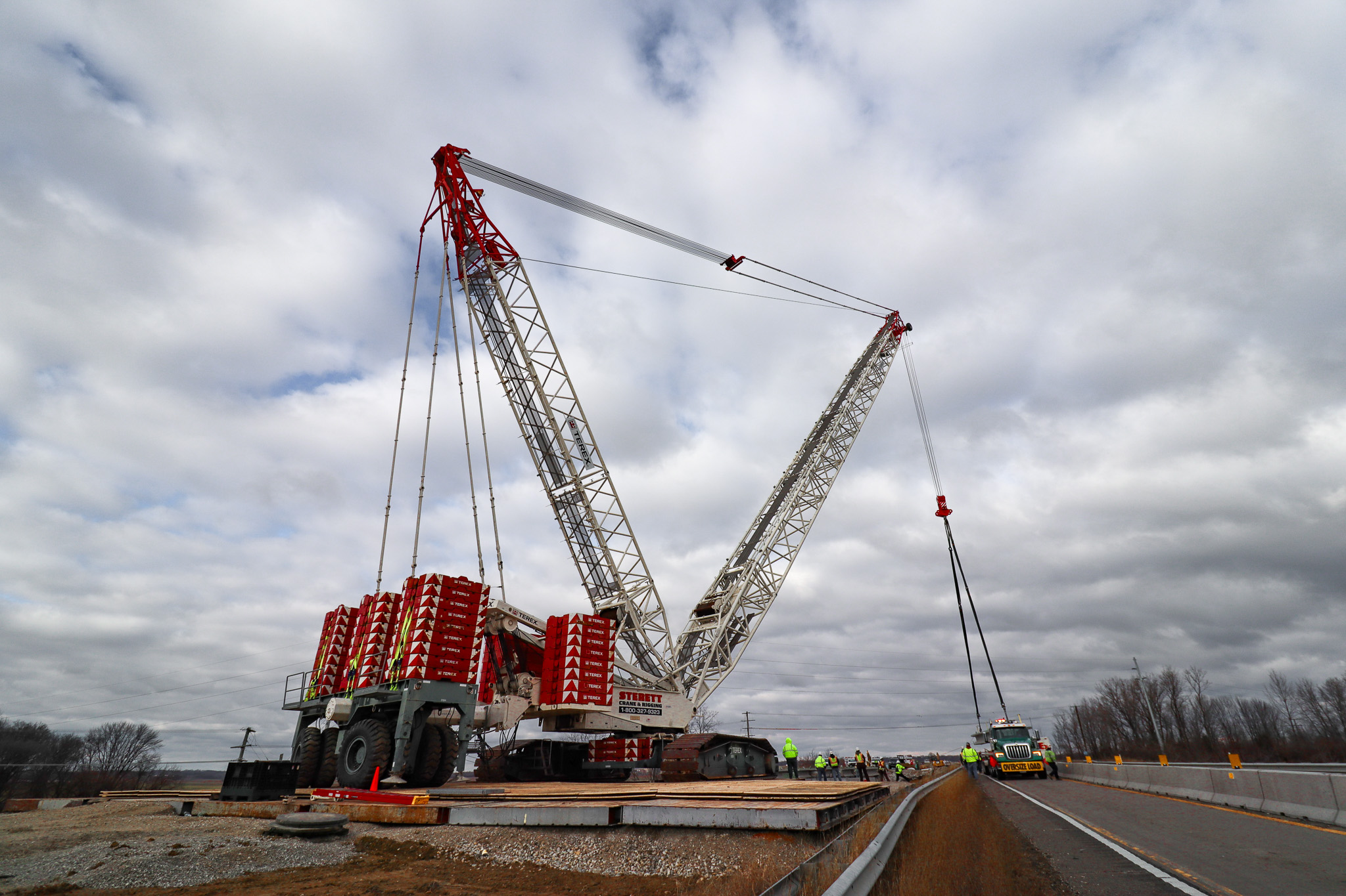 In January 2026, Sterett Crane supported a major bridge construction project in Princeton, Indiana, on Highway 41. This phase of the project required setting mid-span bridge girders directly over an active railroad, making safety, precision, and timing absolutely critical.